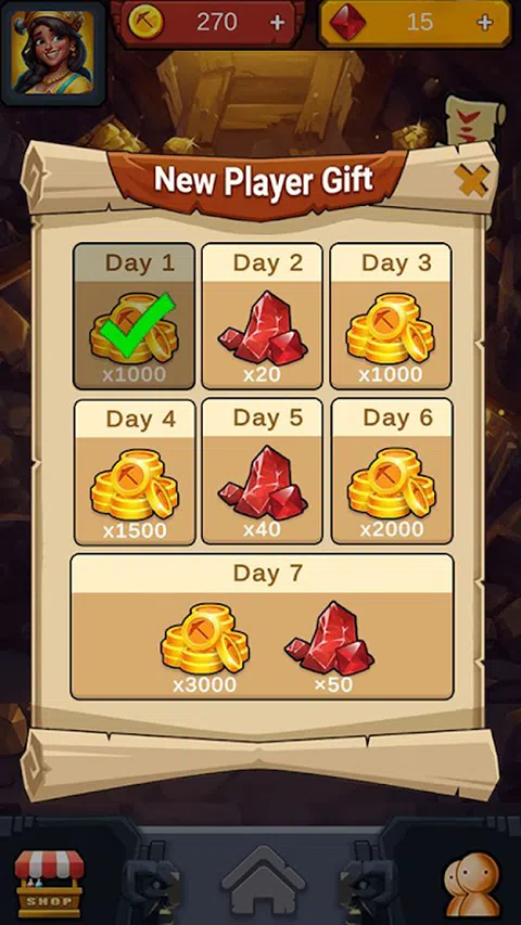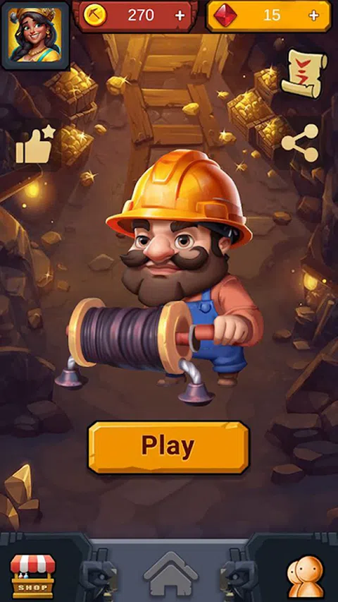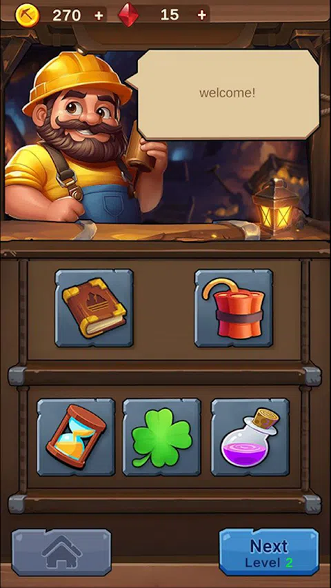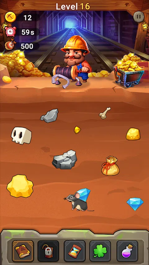 游戏介绍: GoldRushDream 是一款有趣且引人入胜的矿工模拟游戏。玩家将扮演一名矿工,探索洞穴寻找隐藏的黄金。玩家需要通过巧妙的运筹帷幄,在不同的关卡中抢夺金块,以达到关卡目标。 游戏玩法: 1.关卡挑战:游戏具有多个关卡,每个关卡都有自己的障碍。玩家必须在有限的时间内抢到足够的金块才能完成关卡目标。成功完成后,玩家可以进入下一关。 2.物品购买:在开始每个关卡之前,玩家可以使用游戏内的虚拟货币购买炸药等物品,以增加成功的机会