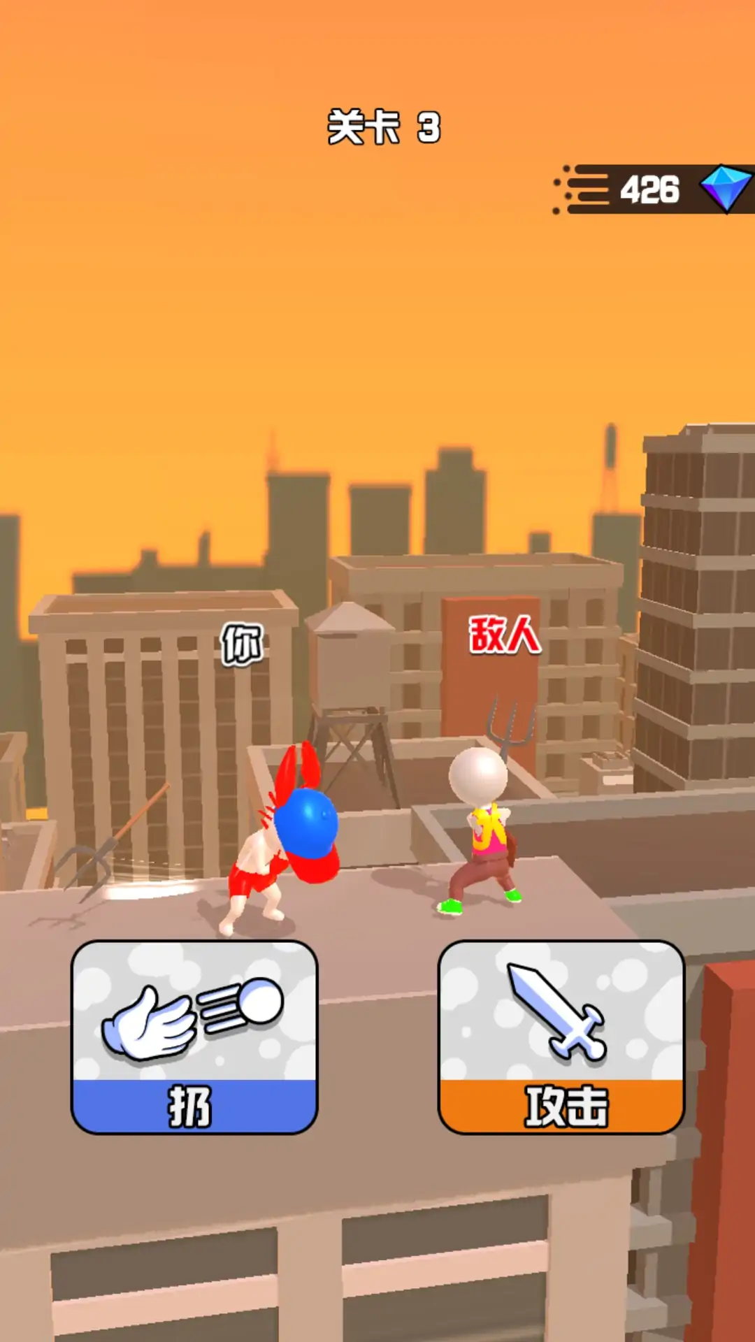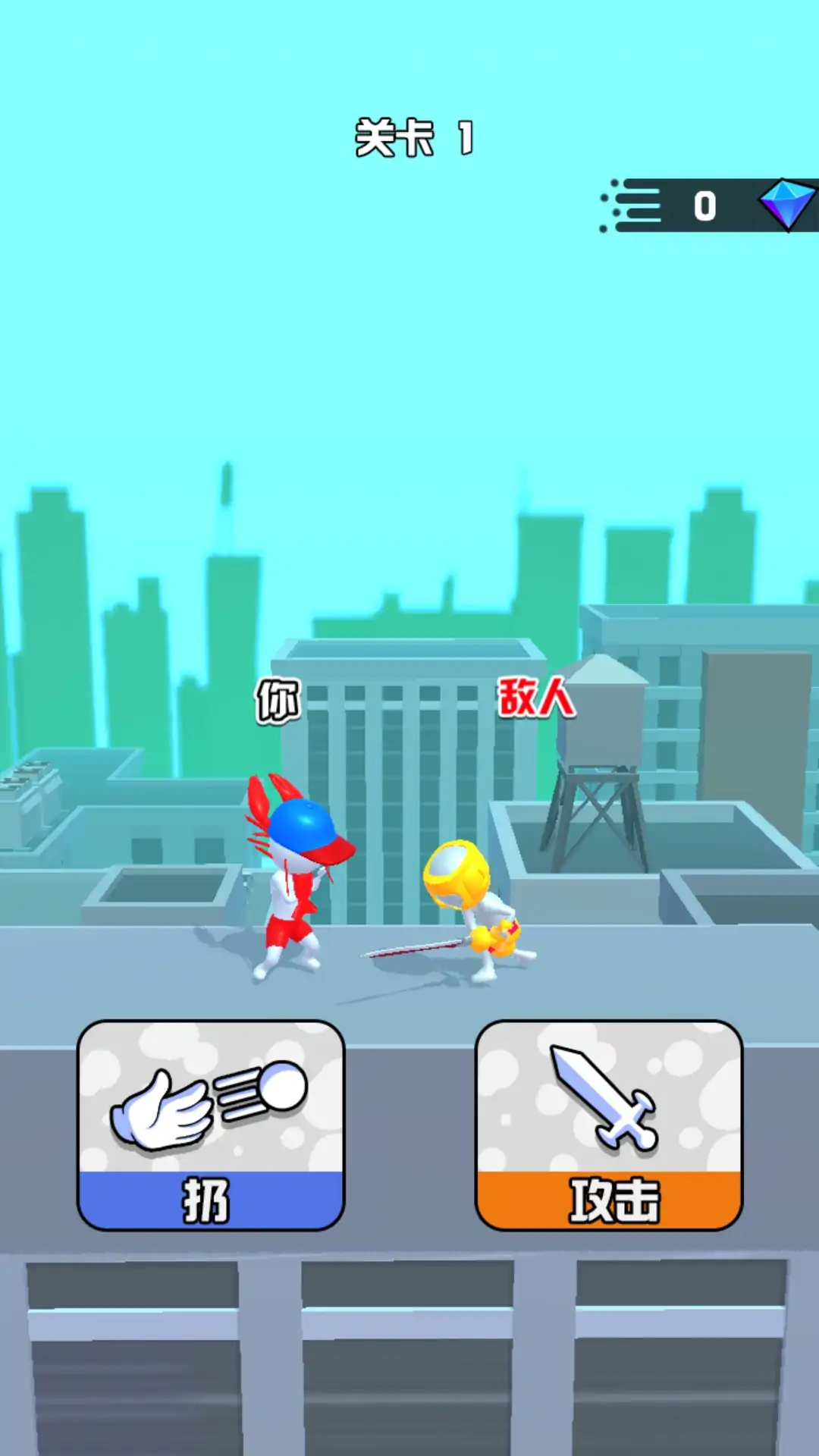玩家需要根据给出的图片画出相对应的武器,获得武器后,点击屏幕攻击敌人,率先将敌人击飞出场外,获得胜利