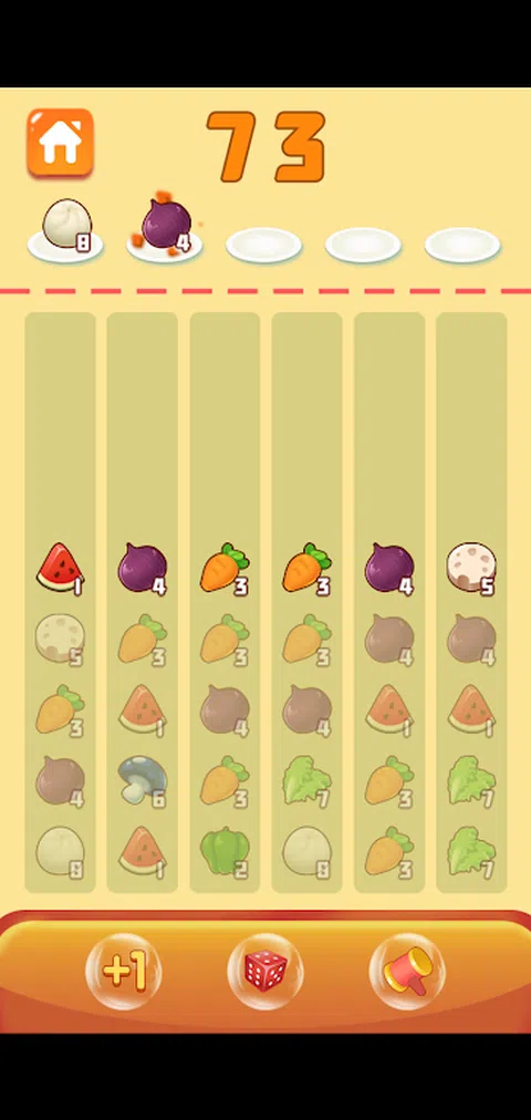 一个简单而有趣的合成游戏,将两种低级水果和蔬菜合成为高级水果和蔬菜,实现美味菜肴的合成。在游戏中,通道中的食材会被放置在盘子上,盘子上的食材会合并为高端食材。快来一起尝试吧