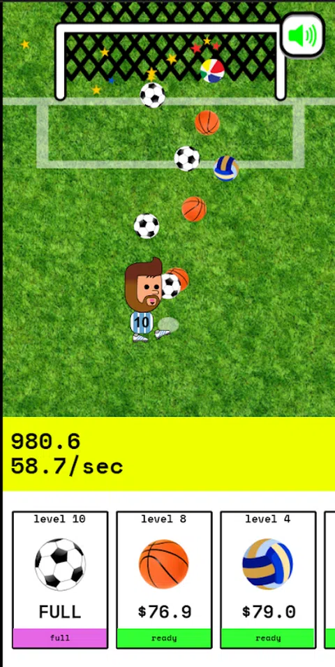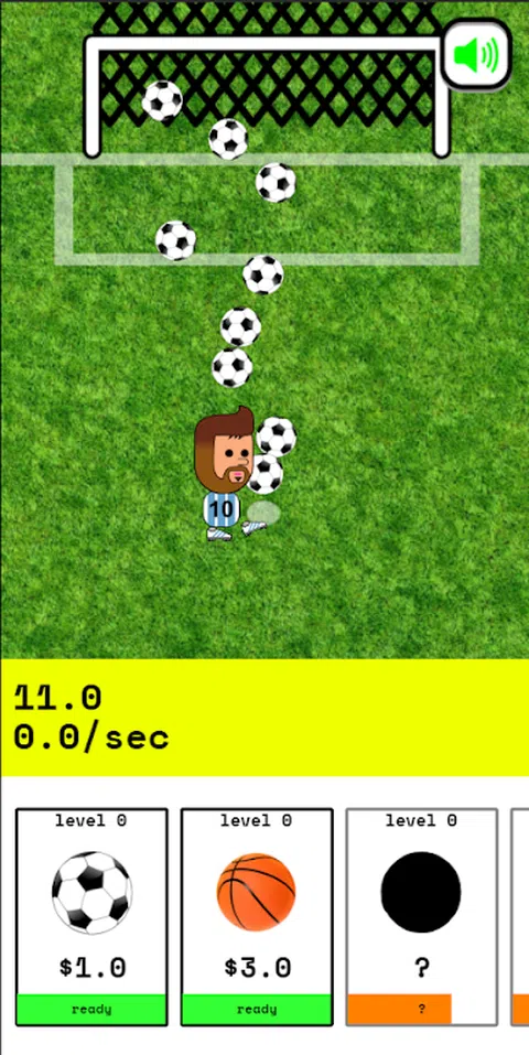 欢迎在这款渐进/闲置/答题游戏中与梅西一起来到激动人心的足球世界。在这个有趣的游戏中,你有机会购买和升级不同类型的球,让梅西在球场上打进更多更好的球。随着您的球的每次升级,梅西将能够进行更精确的射门,进更多的球并增加您的钱。你准备好成为最棒的梅西球迷并建立自己的足球帝国了吗?立即下载游戏,开始您激动人心的动作冒险。玩得开心,让梅西在球场上大放异彩