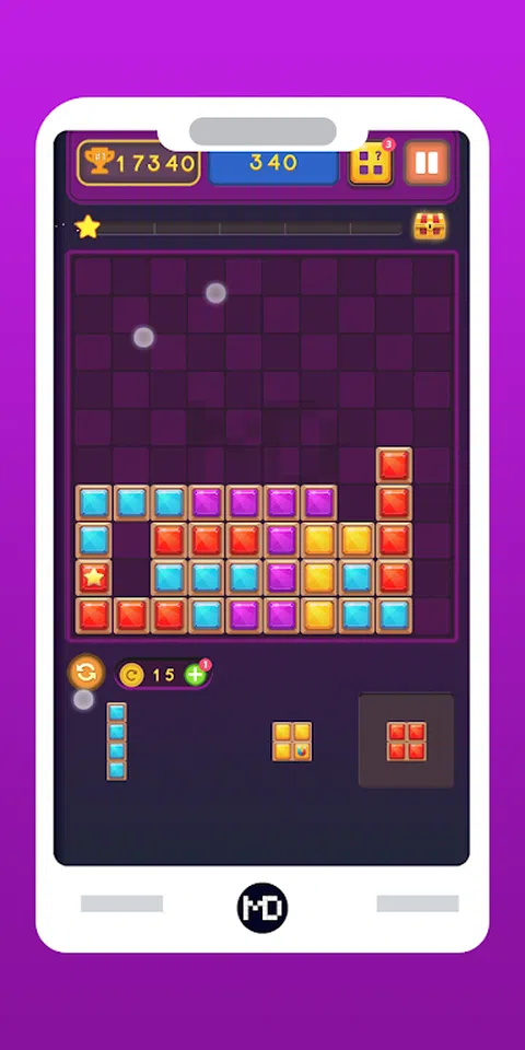 Jewel Block Puzzle 游戏被安排在一个 10x10 的网格画布中,这将使游戏更加有趣