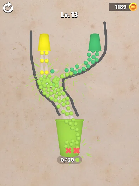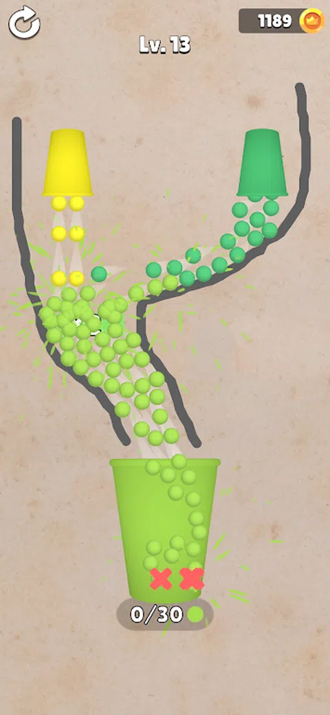 画线以确保只有正确的颜色球才能到达杯子。找到解决难题的最佳方法