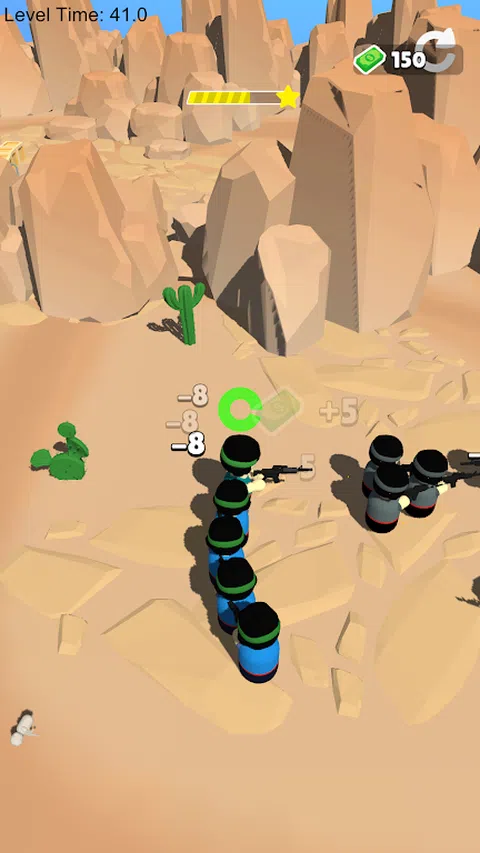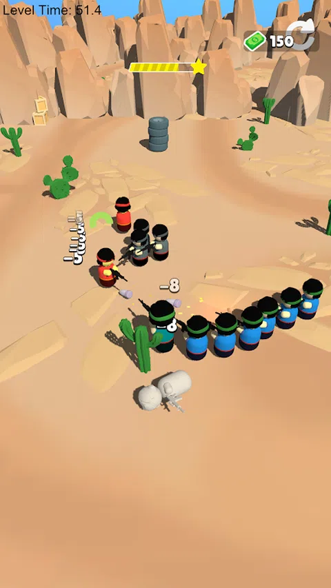 欢迎来到令人兴奋的冒险世界,在那里您可以成为英雄!在这个游戏中,您将面临挑战,通过像蛇一样四处移动来收集单位并创建一条直线。当您收集单位时,您将自动射击敌人并努力击败所有敌人以完成关卡。 在整个游戏中,您的重点将放在击败敌人和保持部队的生命上。这不仅是关于消灭敌人,还关乎策略、时机,并确保您的部队不会成为敌人攻击的受害者。您可以使用的单位越多,您应对最顽强的敌人和首领的火力就越多。 游戏令人惊叹的图形和身临其境的声音效果将带您进入一个充满动感的冒险世界,在那里您会感觉自己是行动的一部分。借助易于使用的控件,您会很快发现自己像专业人士一样在游戏中导航。 你准备好接受挑战了吗?您可以收集、射击和征服吗?那就加入我们的史诗冒险,让我们一起打败敌人