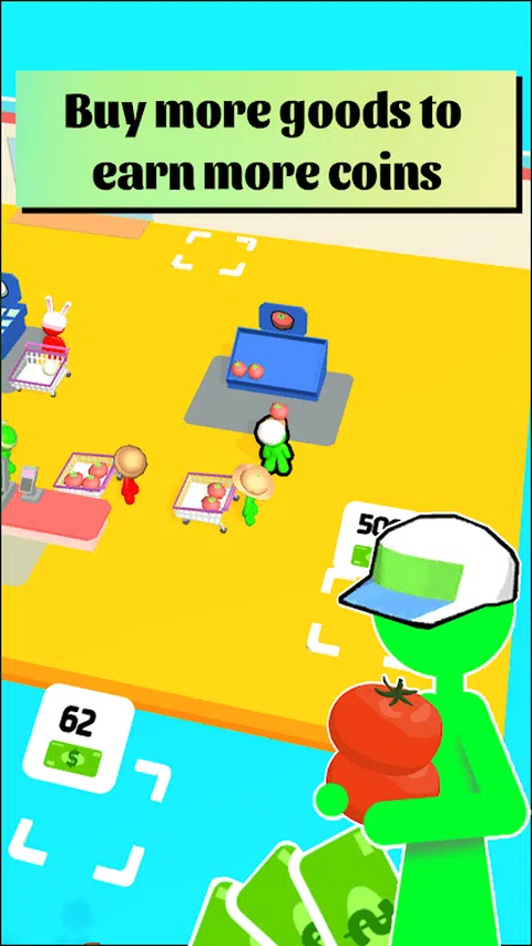 轻松上手休闲减压 出售更多商品以赚更多钱 你可以用钱来扩大你的超市 您需要将商品带到货架上供客户购买
