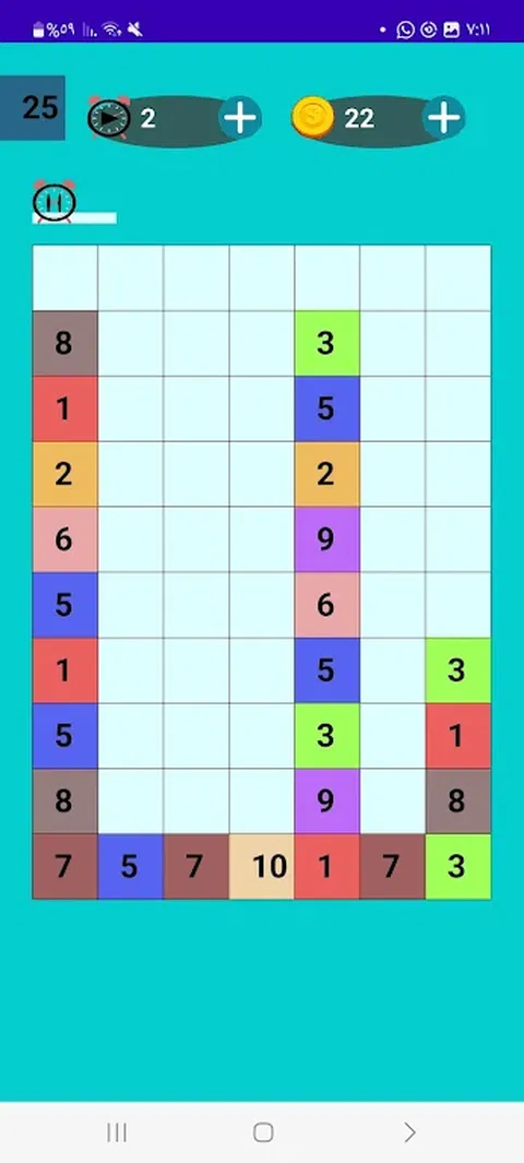 通过合并到数字来变大,直到教 25 的数字来赢得硬币 您可以通过单击屏幕上方的时间来暂停时间 在暂停时间内有更多选择