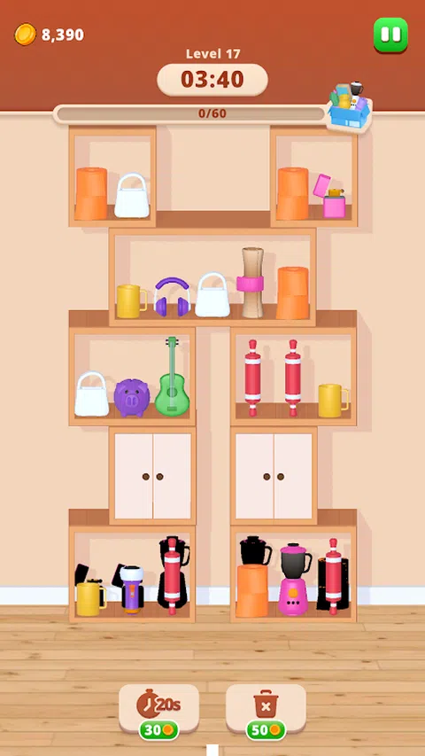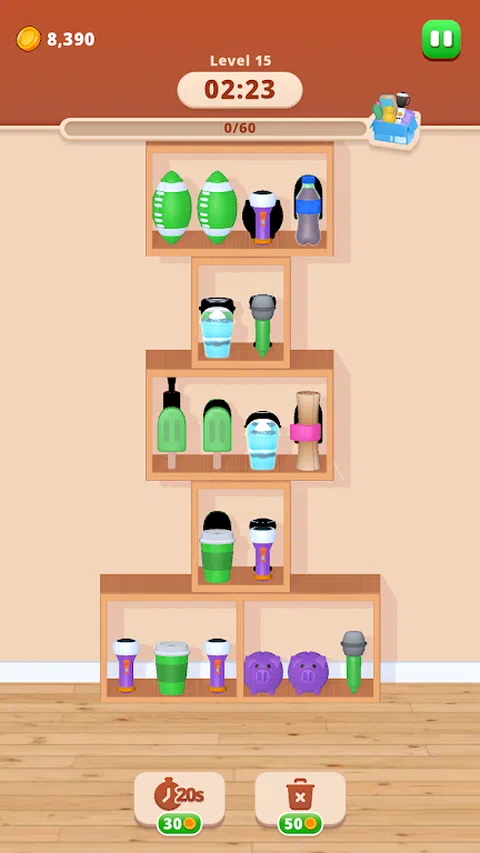 交换商品!是一款有趣且令人上瘾的益智游戏,您可以策略性地在盒子之间交换物品以匹配和清除它们。每个盒子都包含不同的物品,您的目标是巧妙地交换它们以创建全套匹配物品。一旦一个盒子装满相同的商品,它就会消失,帮助您更快地达到目标。盒子上的插槽越多,匹配它时获得的积分就越多。在这个独特的益智体验中,通过有效地分类和交换商品来清除关卡,测试您的逻辑和计划技能