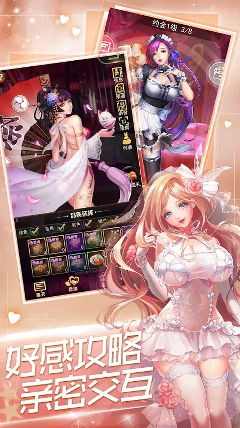在这个拥有异能的堕落都市,恶势力原罪肆虐,和平摇摇欲坠,一位异界少年穿越而来,结伴各个势力的美丽女神,一起携手拯救世界,一路闯关,组队战斗,开始了属于他们的热血冒险之旅。 《女神战姬》是一款都市女神战斗卡牌游戏,全新回合制战斗,多种风格各异的女神角色收集养成,在游戏中你将化身为那个英雄少年,征服无数令人着迷的美丽女神,通过角色搭配和战略布阵,组成最强的战斗阵容,与女神们一起并肩作战、奋战冒险。 独特魅力的女神角色 韩式人物画风,绝美的原画立绘,高挑修长的身材极具风情,完美展现女神的风采。同时还有数十位声优助阵,仿佛身临其境,让你感受无与伦比的沉浸体验。 顶级画质的精美场景 使用顶尖作画技术,高品质战斗画面,近40个全Live2D动态写实场景,完美还原都市风情,酷炫的技能特效,华丽的爆屏动效,震撼的音效,流畅的操作体验,带来极致的游戏享受! 变幻无穷的战术策略 三种职业,多样化人物属性和技能属性,可以随心搭配,自由组合,策略养成,达成不同的战斗效果。 5v5即时战斗,不再是单调的挂机游戏,你可以运用策略和战术,玩转瞬息万变的战场! 全新刺激的交互恋爱玩法 游戏内独创恋爱交互系统,邂逅女神,深入了解女神身世经历,与女神聊天、约会、恋爱,倾听她们动人的对白,通过提升好感度,解锁更多浪漫恋爱故事和特殊奖励,感受真实的爱情甜蜜,享受攻略女神的乐趣! 丰富的副本游戏玩法 壮阔的世界观,千奇百怪的神秘世界自由探索,各种副本活动每天不重复,超爽跨服PK,海量经验神装不停,让你体验不同的冒险! 无论你是喜欢激烈战斗的高手,还是追求浪漫爱情的痴迷者,《女神战姬》都将满足你的所有期待。立即下载并开启属于你和女神的战斗与恋爱之旅吧