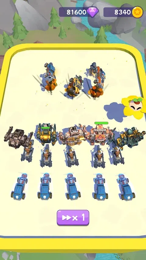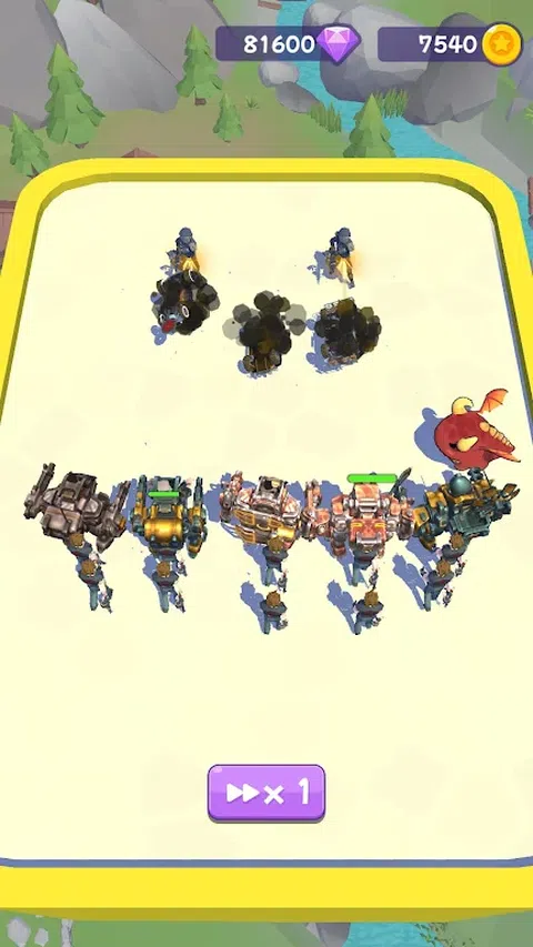 特征: 独特的角色和武器! 奖金和隐藏的机制等待着! 游戏内卡片收集! 令人满意的游戏体验! 游戏玩法: 招募机甲或卡车。 合并您的单位以升级它们。 您的资源有限,因此请明智地使用它们