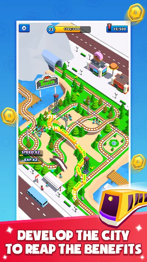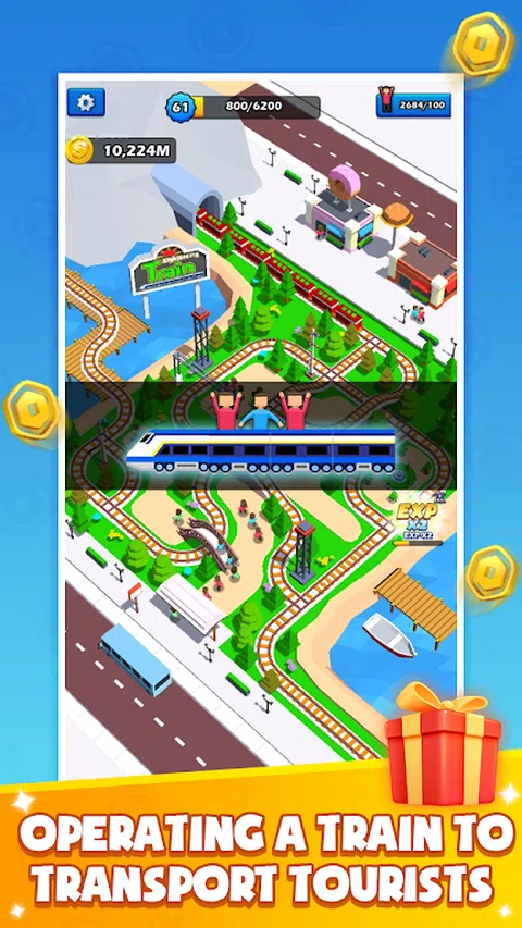 《世界火车大亨》你接管了衰落的家族企业,首先要做的是经营企业,安排你的计划,获得世界各地主要城市的管理权,成为世界火车大亨 ·升级列车 升级列车速度、车厢、票价以增加收入 ·升级车站 升级巴士速度、容量、游客速度、车站容量,以吸引更多游客 ·升级设施 建造商店、桥梁、公园以增加旅游费用 ·升级配件 美化城市并获得更多好处 · 扩展城市 开发世界主要城市,成为世界火车大亨”