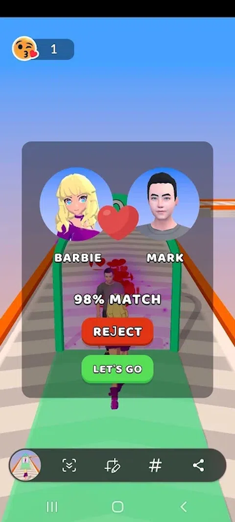 每个人都在谈论的全新跑步游戏。在这个游戏中,你需要收集亲吻来解锁你的梦想中的男人,并用心升级你的男人