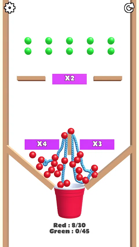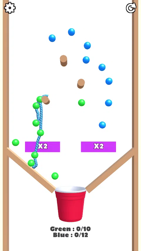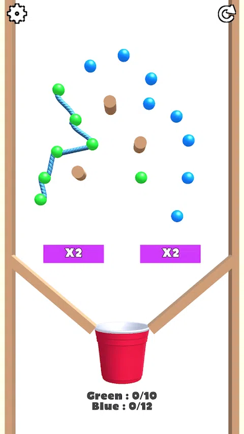 一个绳索和球连接益智游戏:将绳索连接到相同颜色的球并填充杯子以清除该部分并移动到新的级别。 有趣的基于物理的机制每次都会导致不同的结果