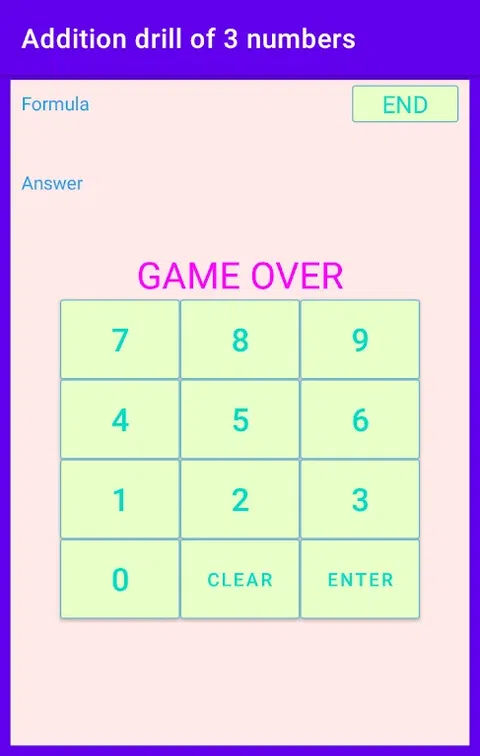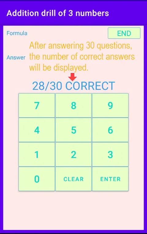 如果你想在脑子里计算三个加法,你需要记住加法的结果,然后再次相加。如果你没有很好地记住它,你会犯错。 我准备了一个短视频,请使用它。视频大小:700kB [游戏概述] 将问30个问题。 回答30个问题后,将显示正确答案的数量。 如果您正确回答了所有30个问题,则下一次学习的难度会增加。难度以数字形式显示,从1开始,逐渐增加到22。 [游戏结束] 回答30个问题后,您将完成。 即使在游戏中间,您也可以随时按结束按钮来结束游戏。 [关于记录] 每次都会记录难度和分数。按住重置按钮可清除记录并将难度返回到初始状态
