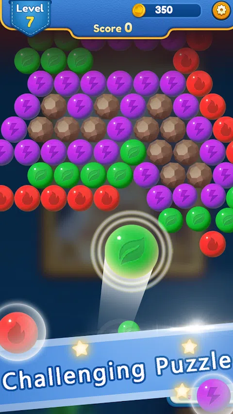 游戏中有许多不同颜色的泡泡,您需要控制发射器来射击泡泡并使其消失。每个级别的难度都不同,请记住使用道具