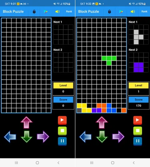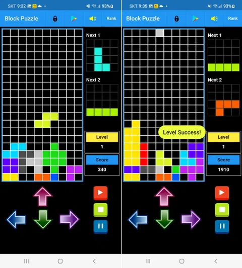 Block Puzzle 是一款简单有趣的游戏,您可以与朋友一起独自玩。 [怎么玩] 1. 使用右下角的播放按钮、结束游戏按钮和暂停按钮来玩游戏。 2.游戏开始时,按左下角的 4 个按钮移动物品。 3. 在查看项目时,左下角的四个按钮可以移动、旋转或向下移动。 4. 一个减少项减少了提升地面。 5. 处理完 40 个物品后,关卡结束。 6. 随着级别的提高,您的速度将逐渐增加。 要重新开始,请从第 1 步重新开始