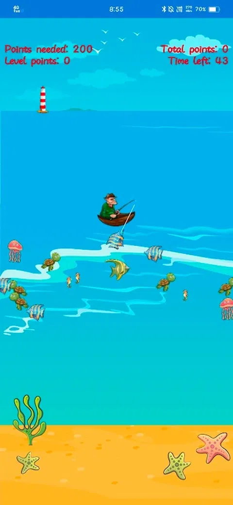 玩家必须捕捉尽可能多的鱼,直到计时器完成。用户必须更快更好 - 捕捉更多鱼类才能成为真正的赢家