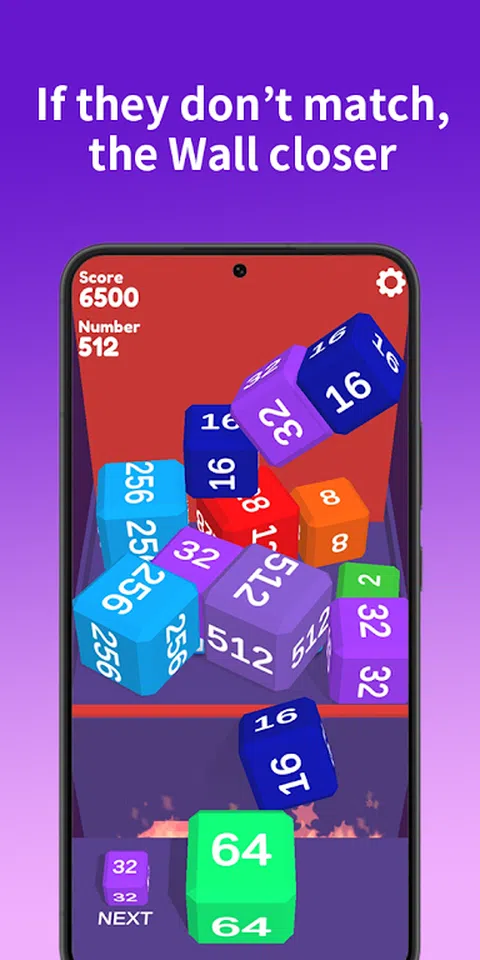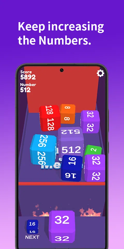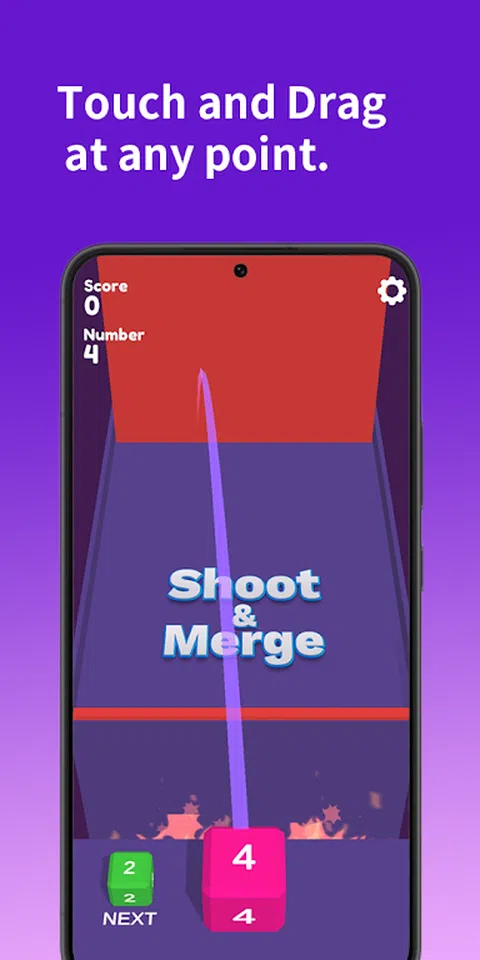 按住屏幕上的任意点并拖动以瞄准,然后射击一个数字方块。 相同数字的方块将相互合并,数字为 2 倍。 尝试达到最高数字