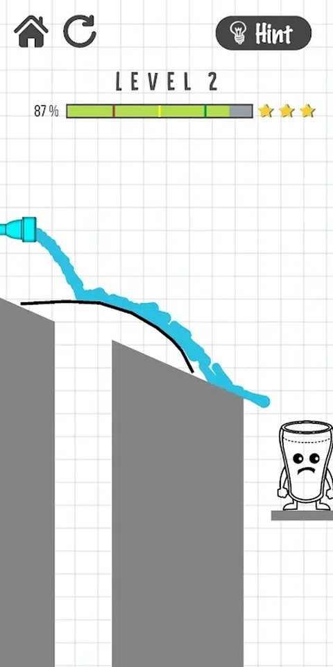Cups And Stopcock 是一款简单而有趣的迷你游戏,玩家需要在屏幕上画一条线,将水装满水杯。游戏中有多个级别和不同的难度级别,每个级别都有不同的障碍和挑战。玩家需要不断尝试和探索以完成所有级别。Cups And Stopcock 是一款简单而有趣的迷你游戏,让玩家体验倒水的乐趣和挑战,同时提高他们的手眼协调能力和反应速度。如果你喜欢清爽的休闲游戏,那么这款将水倒进水杯的小游戏绝对不容错过