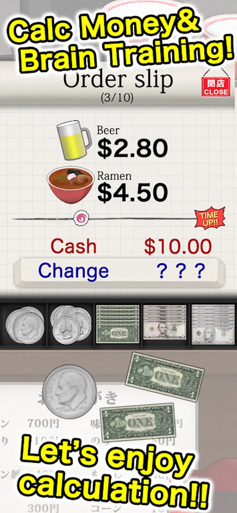 你是一家拉面店的兼职工人。 作为收银员,您必须处理许多客户。