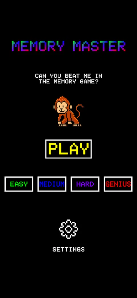 最难的记忆游戏之一。 共有 4 种游戏模式,包括简单、困难和天才。 有趣的黑猩猩将在游戏中挑战你