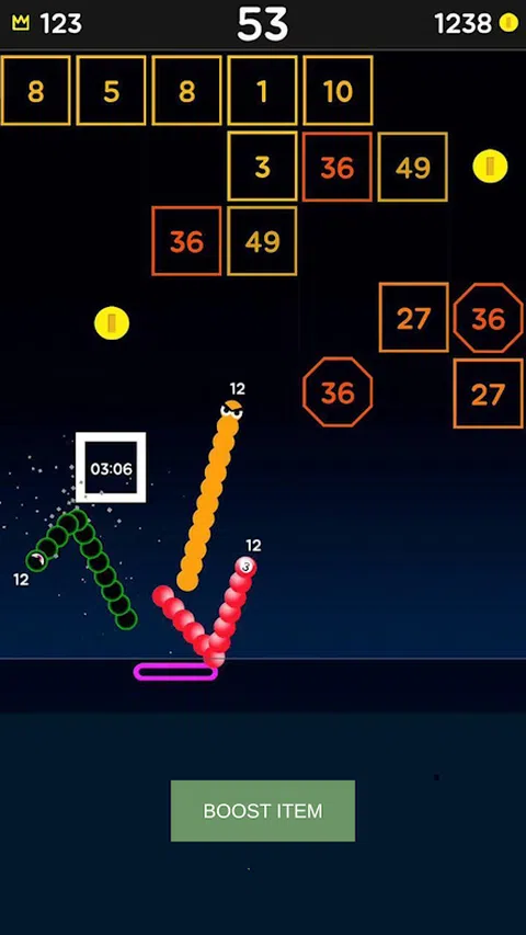 Brick Breaker Snake 是一款经典的砖块粉碎风格游戏,其乐趣、放松和挑战性提高了十倍。很快,您就不想放下它。 左右滑动,操纵挡板,弹跳一条由小球组成的蛇,不断弹跳并击打砖块! Brick Breaker Snake 是最令人满意和最具挑战性的游戏,您将不间断地玩游戏!解锁一系列有趣而精彩的游戏蛇,以时尚的方式破坏这些砖块!挑战在于找到完美的角度来清除尽可能多的砖块,因此您需要将机智的逻辑能力付诸实践。为了让您的砖块破碎更加有趣,我们将为您带来许多物品,以帮助您消灭所有这些砖块。 主要特点 ► Brick Breaker Snake 是免费游戏。 ► 具有挑战性和趣味性的破砖游戏。 ► 你很快就会不间断地玩它,非常上瘾! ► 滑动并移动横条,弹跳蛇以打破砖块。 ► 找到完美的角度来清除尽可能多的砖块。 ► 制作更长的蛇以增强攻击力。 ► 挑战模式和无尽模式带来无尽乐趣。 ► 获得惊人的奖励,并通过锦标赛享受有趣的游戏。 ► 收集各种蛇 ► 摧毁尽可能多的方块 ► 没有 wifi 游戏,离线游戏 打破所有的砖块会增加你的分数,越高越好!让我们接受这个挑战,向积木展示谁是这里的老大