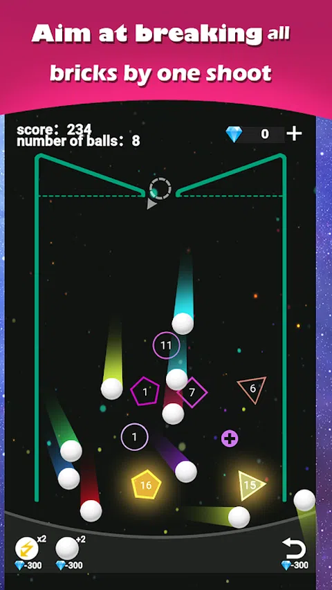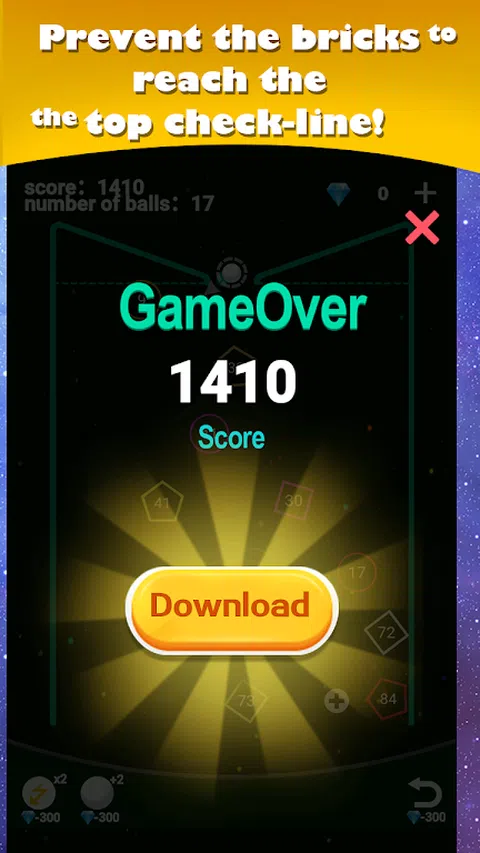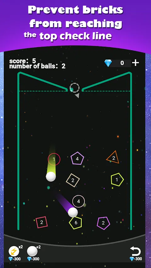 按住屏幕并水平拖动手指以瞄准,放手发射所有等待的弹球,轻松打碎所有砖块! - 使用道具来增加球的数量和伤害。 - 防止积木到达顶部检查线