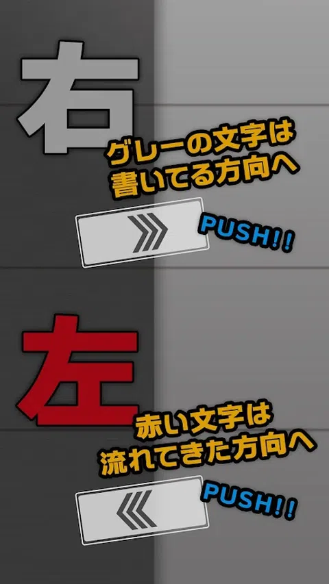 让我们梳理一下一个接一个落下的左右字母,训练你的大脑! 即使你在脑海中知道它,它不是很混乱吗? 在这种情况下,您可能需要进行大脑训练。 不要轻视它只是左顾右盼~ 这是一款大脑训练游戏,根据每种颜色的规则对从上方流动的左右角色进行排序。 这是一个任何人都可以享受的简单操作,所以它是一个大脑训练,所以请一次又一次地尝试,以S评估为目标! ! -规则- 当从上方流出的左右字母为灰色时,按书写方向的按钮。 当左右字母为红色时,按流动方向按钮。 您可以仅使用这些规则进行大脑训练,因此每天挑战并训练几分钟