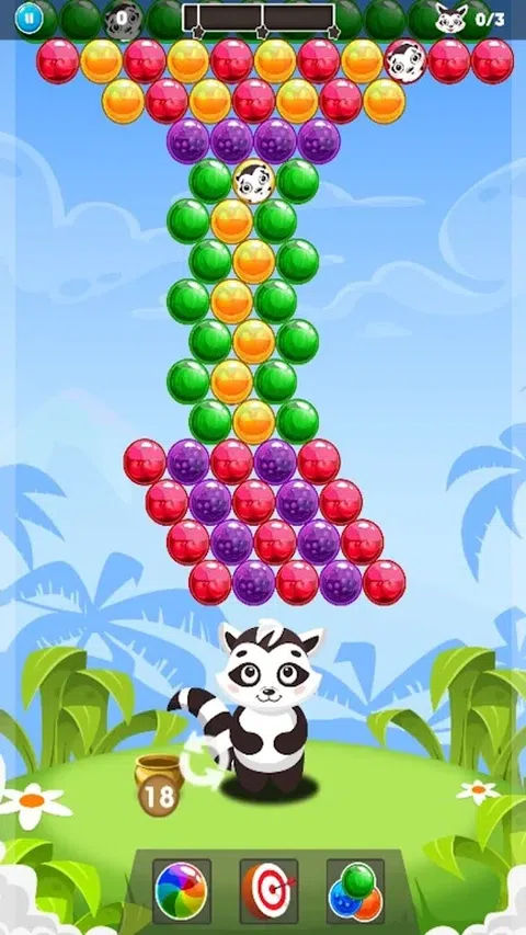 你喜欢泡泡射击游戏吗?如果是,那么这个游戏适合你。现在,告别老式的经典泡泡射击游戏,加入我们独特的泡泡射击浣熊救援游戏。我们的泡泡射击浣熊救援是一款很棒的泡泡射击游戏。在这个游戏中,您必须至少射击 3 个相同颜色的泡泡!游戏的目标是帮助浣熊从泡泡中拯救她的婴儿。资产包括许多游戏功能和障碍。玩家必须使用独创性和技巧来通过关卡。接受挑战,点击并射击!爆破泡泡!冲破泡泡墙,享受无尽的免费射击! 下载并享受游戏