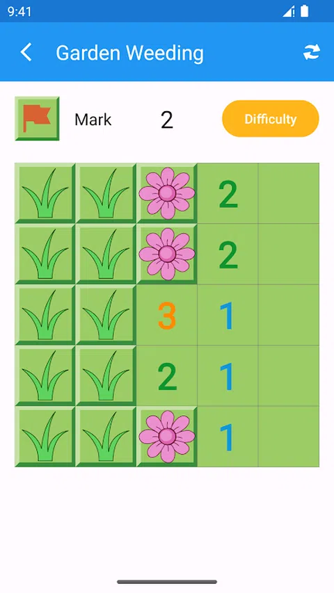 花园除草是一款创新的扫雷游戏,以美丽的花朵和清新的草皮为背景,为玩家带来了全新的游戏体验。相比传统的扫雷游戏,花园除草注重创意和放松,让您在欣赏花朵的同时挑战自己的智力。 游戏中,您将进入一个精心设计的花园,每个区块都隐藏着花朵或者杂草。您的任务是点击草皮,除去杂草,同时避免触碰花朵。与传统的扫雷游戏不同,您不再面对冷酷的地雷,而是迎接各种各样的花朵,为游戏增添了一抹生机和美丽。 在花园除草中,每个区块下方的数字仍然存在,它们表示该区块周围的花朵数量。根据这些数字的提示,您可以推测出哪些区块是安全的,哪些区块可能隐藏着杂草。请记住,谨慎思考是成功的关键,只有通过合理的推理和猜测,您才能保证安全地除去杂草并收获美丽的花朵。 花园除草提供了多个难度级别,从初级到高级,适合不同程度的玩家。您可以根据自己的喜好和能力选择适当的难度。您可以在繁忙的工作或学习之余,打开花园除草,享受一段愉快的休闲时光。 快来花园除草中挑战自己的智力和观察力吧!在小小的花园里面挖呀挖呀挖,点击草皮,除去杂草,收获美丽的花朵。让我们一起创造一个花园的奇迹