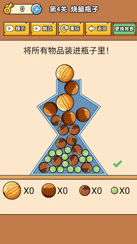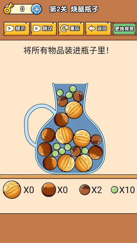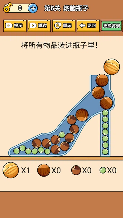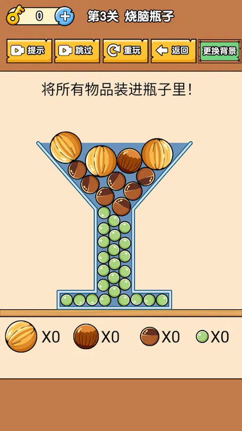 烧脑瓶子是一款非常的益智的游戏,游戏的非常的考验玩家的智慧,玩家需要不断的开动自己的脑筋,玩家可以获得非常丰富的游戏体验,游戏的道具非常的丰富,这样玩家才可以进行更好的过关,游戏的关卡非常的丰富,玩家可以不断的进行获得,进行更好的过关辅助。烧脑瓶子优点 1、试着把所有的瓶子都装满,当你不能一次把它们全部装进去后,你必须调整不同球的大小。 2、烧脑瓶子一开始你会觉得很难,但你可以在玩得更多之后总结经验。 3、有许多层次,你可以很容易地开始,但每个级别的目标和任务是不同的