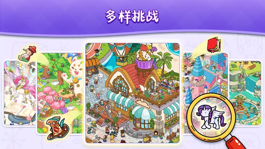 玩免费的轻松隐藏物品游戏,娱乐并锻炼您的大脑!简单而令人上瘾,尽情享受找不到隐藏物品的乐趣!数百个独特主题地图在等待隐藏解谜大师和寻物爱好者来探索。 《隐藏物品:寻找与发现》是一款经典而舒缓的隐藏物品解谜游戏。您在游戏中的目标非常简单 - 找出所有指定的隐藏物品并找到它们!您可以使用强大的道具来定位并找到隐藏宝藏。通过放大、缩小和在动态地图的所有区域中划动来探索。这是一个发现隐藏物品的愉快旅程,也是一个令人满足的脑筋急转弯,您可以随时随地享受。 通过无数短小的隐藏乐趣关卡,您将被带到不同的世界,并在这个寻宝游戏中发现各种隐藏惊喜。宝藏可能隐藏在任何地方 - 从漂浮在云端的魔法王国到龙窝的深处 - 等待着您免费寻找。在我们为您创建的这个隐藏物品仙境中开始一场新的“搜索与发现”冒险! 游戏亮点 免费游玩 在不花一分钱的情况下享受奇妙的隐藏世界。 快节奏的游戏玩法 简短却引人入胜的关卡,每个关卡有10-30个隐藏物品,让无聊无处藏身。 简单上手 简单的游戏玩法让您专注于寻找隐藏物品的乐趣! 适合短暂休息 下班或放学后,寻找隐藏宝藏是一个快速放松的理想选择。 绝美地图 在这场激动人心的寻宝之旅中,我们为您提供不同的地图场景。您最喜欢哪张地图,是经典的城市街景还是富有想象力的科幻世界? 动态视觉 动态视觉效果使寻找隐藏物品的场景变得更加迷人! 多种难度 除了放松,这款寻物游戏还提供有趣的挑战。您能找出最后一个隐藏物品吗? 道具助力 您觉得很难找到那些隐藏得很好的宝藏吗?使用我们的不限量道具来助您一臂之力! 放大与探索 滑动放大和缩小,确保您在搜索时不会错过任何隐藏物品! 无限游玩时间 慢慢来,享受“寻找与发现”的探险,并按照自己的节奏寻找隐藏物品。 适合全家欢乐 一款适合所有年龄段的寻物游戏,对孩子有趣,对成年人也有益。 《隐藏物品:寻找与发现》非常适合所有级别的隐藏物品爱好者。超过1800个独特的隐藏宝藏和具有挑战性但可解决的谜题,这款寻找游戏让您挑战发现微妙隐藏物品,提升您的感知力、专注力和认知能力。无论您是隐藏物品新手还是寻物游戏大师,您都会从一开始就着迷! 下载这款寻宝解谜游戏,找到隐藏物品,体验寻找和发现的乐趣,同时证明您高超的观察技能!立即开始搜寻宝藏,探索精美地图吧
