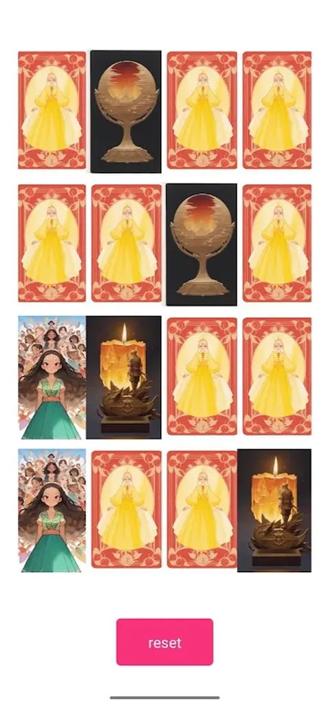 这是一款有趣的翻牌游戏。这个游戏真的很考验你的记忆力。翻开两张相同的牌即为成功,直到所有牌都翻开为止。挑战自己,在最短的时间内完成游戏,快来试试吧。