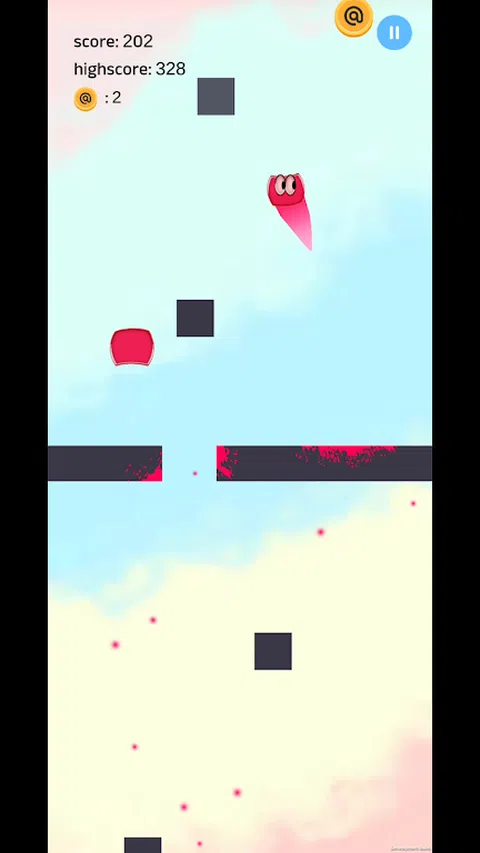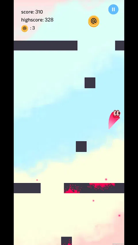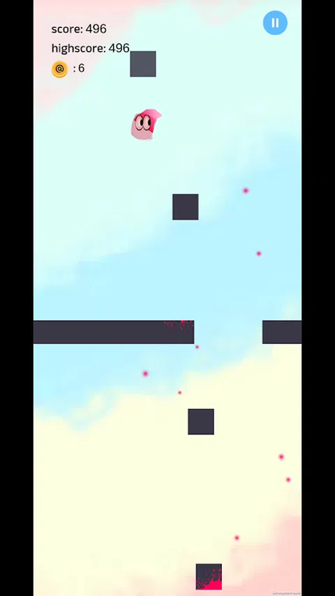 点击两侧,使角色跳起来,避开障碍物,向上移动并收集收藏品和道具,使游戏变得有趣。如果你掉出屏幕,你就出局了