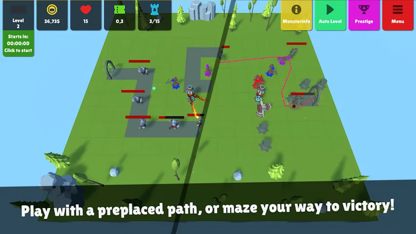 建造塔楼,防御多达300波怪物,并使用正确的策略升级塔楼!有11种不同类型的塔,您可以从5种开始,但可以通过游戏解锁更多6种!每个塔都有三种独特的能力,可帮助您通往最后一层,因此您可以更好地了解它们的作用以及如何使用它们来走得更远! 随着您的进行,您将通过玩游戏获得几种不同的永久升级,这些升级会影响单个塔或使您达到更高级别的一般升级。 游戏具有6种不同的游戏模式和18种不同的地图,其中包含可以构建的预制路径,这将需要不同的策略和游戏玩法, 但是游戏还提供了3张(现在还会有更多)地图,您可以在其中建造怪物必须通过的塔楼迷宫。 该游戏还具有闲置/增量机制,即使您不玩游戏也可以获得金币!休息一个小时,然后回来并走得更远! 你觉得你能做到吗?你是最好的吗?与朋友或陌生人竞争最高排行榜排名! 此游戏尚在开发中,因此如果您有任何反馈或批评,请随时发表评论或给我发送