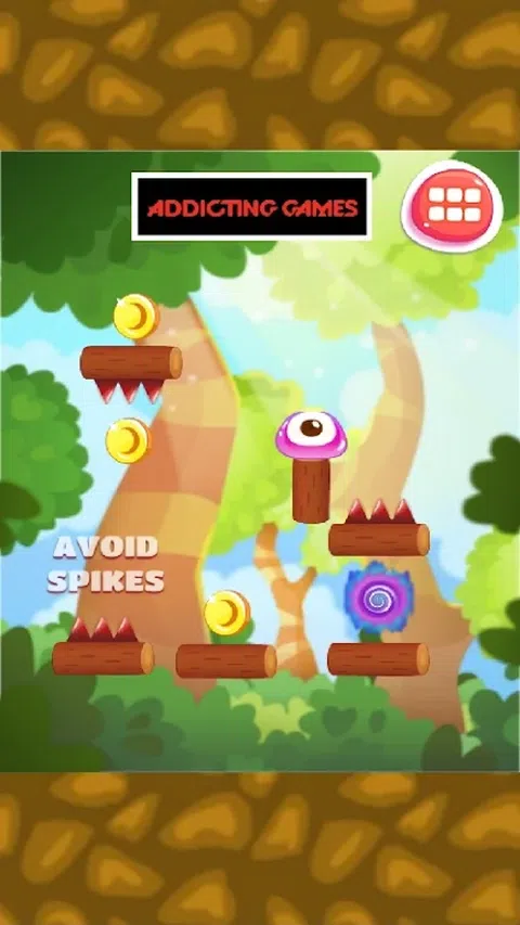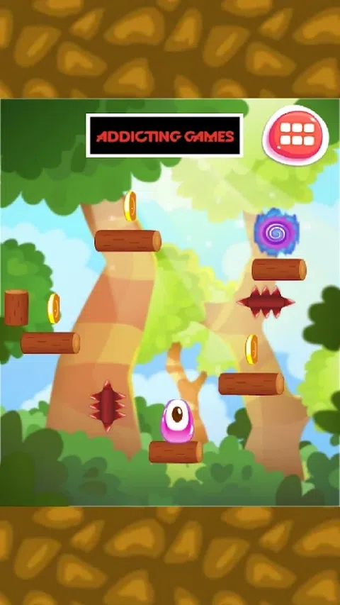在这个可爱的平台上,从一个平台到另一个平台投掷紫色斑点,收集硬币。弹跳冒险是一款街机游戏。跳跃和弹跳来玩游戏