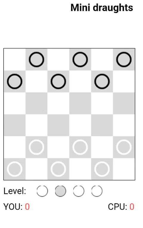 * 无广告 * 源代码: 以下是我在创建游戏时使用的西洋跳棋游戏的简要概述: - 游戏面板由 6×6 个正方形组成 - 一个棋子可以对角线向前移动一个格,直到一个空的正方形, - 一块可以向前和向后捕捉, -王可以向前或向后沿对角线移动穿过任意数量的未占据方格,在同一移动中,它可以俘虏对手, - 捕获是强制性的, - 获胜者是捕获或阻挡所有对手棋子的玩家, - 如果玩家和对手的移动重复三次,则为平局