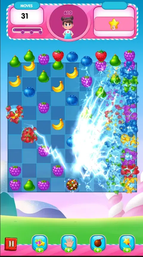糖果水果世界 适合您和您所有的朋友 通过连续匹配3个或更多糖果来安排糖果移动,明智地克服额外的粘性难题 炸毁巧克力并收集糖果,确保您更渴望! 特点: 在您的业余时间为您带来快乐的游戏 获得奖励的方法不止一种 每天回来查看并旋转奖励转盘以获得免费的美味奖励,奖励可以帮助你争取时间来升级! 随时随地玩,全部免费 单独加入这个传奇游戏或与朋友一起玩,看看谁能获得最高分和最高级别 连接到互联网后,您可以轻松同步游戏并访问游戏功能。 享受这个美妙的糖果水果世界