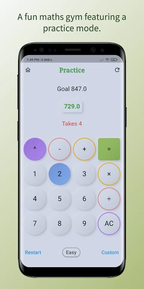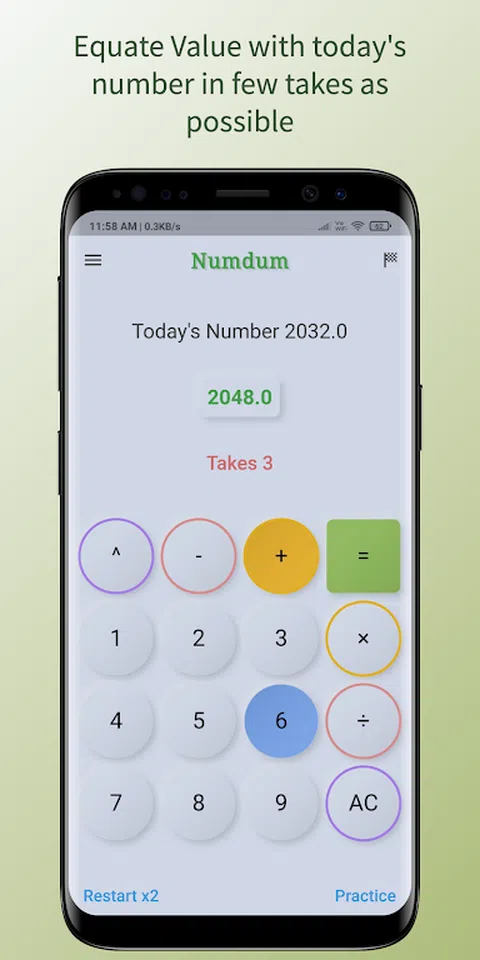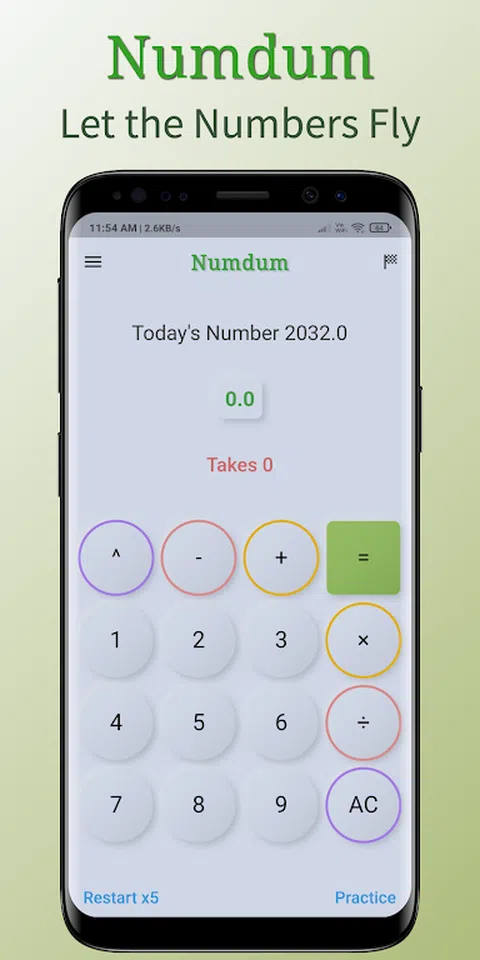 使用Numdum-数学数字游戏提高您的数学技能。Numdum是一款有趣的数学数字游戏。它专为喜欢脑筋急转弯游戏、大脑训练游戏、教育游戏、数字游戏和数学游戏的人而设计。每天享受新的数学练习和数学挑战。让数字飞起来。 概念: 您的目标是在尽可能少的TAKES内将VALUE与今天的数字相等。换句话说,该值应等于今天的 numdum 数字。例如,如果今天的数字是 2048,你必须使用你的数学技能,并使用你的数字游戏,以尽可能少的 TAKES 得出 0.0 到 2048 的输出。有关此数学游戏的详细信息,请参见下面的指南。 特点: ➼ 每日新挑战。 ➼ 通过练习模式提高您的数学能力和数字游戏能力。 ➼ 根据自己的喜好设置难度级别。 ➼ 自定义数字设置器。 ➼ 便携式数学健身房。 ➼ 大脑的数学练习和刺激。 ➼ 保持大脑活跃。 玩法指南: • 每天将分配一个带有初始值的新Numdum数字。例如,今天的 numdum 数字是 2345,值为 0.0。 •您的目标是将初始值与当前的numdum数字匹配。即,该值必须与当前的numdum数字匹配。例如,今天的数字数字 2345 = 数值 2345。 • 您必须以尽可能少的次数完成目标。每次单击“=”按钮时。一次拍摄增加。 • 每次只能使用一个运算符(+、-、×、÷、^)和一个数字(1-9)。 • 每个表达式都使用初始值计算。作为示例,假设初始值为 0.0,并且您添加了 + 5。初始值为5.0。如果您选择将其乘以 5,则初始值将为 25.0。 以有趣的方式测试和改进您的数学游戏。用Numdum让数字飞起来。 一切顺利