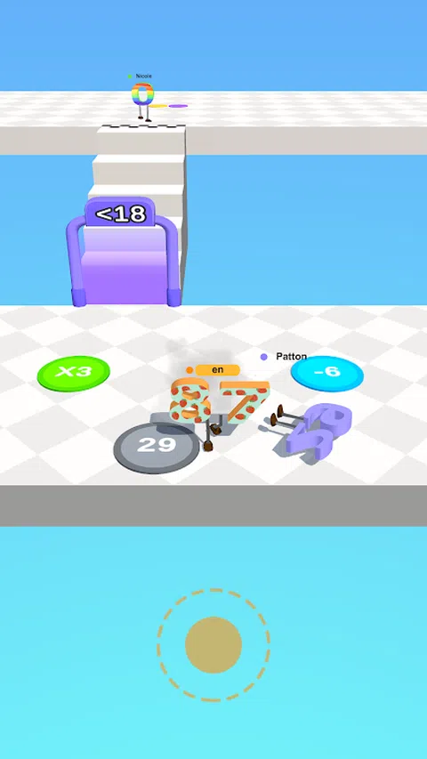 Sum 在这个游戏中,你控制一个从零开始并在面板上移动的数字角色。您的目标是触摸计数点,根据计算更改角色上的数字。当您角色上的数字与目标门上的数字匹配时,您可以穿过门并进入下一个级别。但是,如果您的号码不正确,您将被退回并必须重试。 随着关卡的推进,计算变得更具挑战性,您需要快速思考以做出正确的移动。该游戏旨在教授数学技能,同时提供有趣且引人入胜的游戏体验。它非常适合想要提高数学技能或只是在玩休闲游戏时获得乐趣的所有年龄段的玩家。凭借其令人上瘾的游戏玩法和教育价值,它是任何寻求有趣且具有挑战性的方式来提高数学技能的人的绝佳选择。