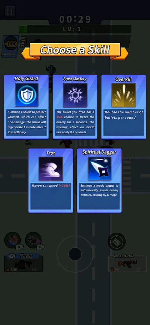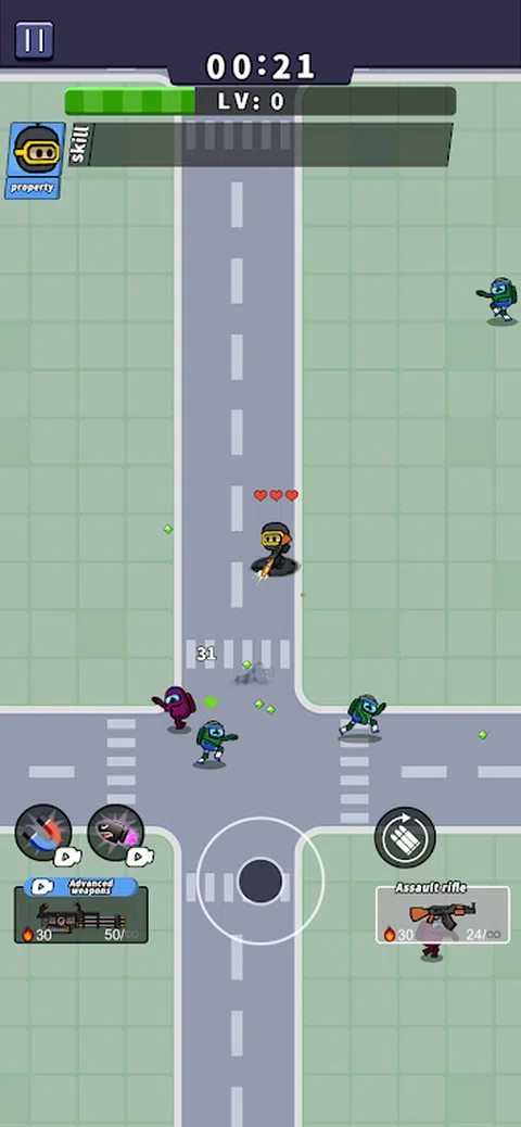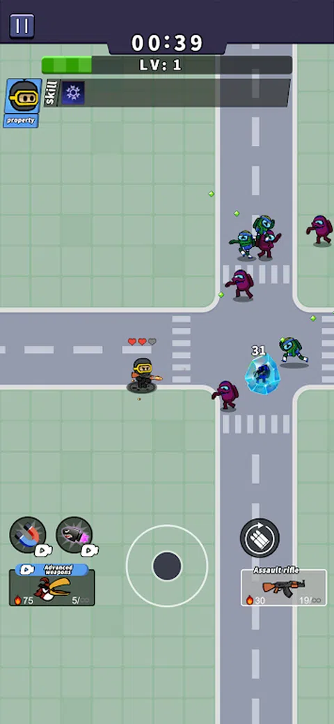 本游戏不肝不氪,完全依靠你的灵活操作!如果你拥有顶尖的技巧,十足的智慧,就可以在末日生存到最后,拯救人类! - 僵尸军团 游戏中的僵尸种类繁多,每种僵尸都拥有独特的技能和特点。每过一段时间,你还将迎来强大的僵尸boss,需要运用你的战斗技巧和智慧来战胜他们。通过击败僵尸,你将获得经验值,提升自己的等级,争取在末日生存更长的时间! - 酷炫技能 游戏中拥有10多种酷炫技能供你选择,例如闪电、燃烧弹、多子弹射击、自动回血、护盾和加快移动速度等。你还可以升级你的小特工角色,提高移动速度和攻击力,让你在战斗中更加强大。 - 非凡武器 除了角色升级,你还可以选择10余种不同的武器来应对僵尸军团。每种武器都有独特的特点和能力,有些高级武器甚至具有特殊效果,可以帮助你更好地对抗僵尸军团。你的技巧和决策将在生死关头决定胜负。准备好迎接这个来自僵尸世界的挑战吧!加入游戏,展示你的勇气和智慧,成为僵尸大战中的英雄