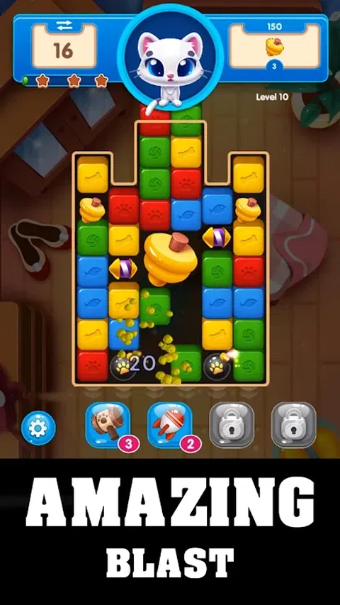 在 Pop Cats 中,Block Pop 射击乐趣伴随着轻松的氛围和欢快的动物。不断地,为这款令人上瘾和放松的 Block 流行射击游戏添加更多有趣的关卡。 对于那些厌倦了在简单的方块爆破游戏中逐渐下降的泡泡射击的人来说,这款游戏主题的方块射击游戏提供不同的方块爆炸任务,具有拼图级别,甚至基于物理的方块射击游戏级别。 在你的方块流行之旅中有动物救援模式。将方块弹出到相同颜色的方块组,直到您拯救猫。在此方块游戏的某些级别中,有方块旋转圆圈,中间有一只猫。目的是弹出猫周围的方块,将猫从基于物理的方块麻烦中拯救出来。此外,还有一些方块爆破任务可以营救方块中的猫