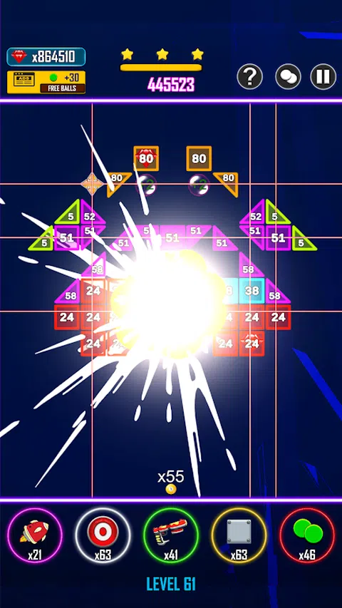 欢迎来到 Brick Breaker Blast Off,终极的砖块粉碎游戏!准备好迎接令人上瘾的游戏体验,该体验结合了策略、物理谜题和经典街机乐趣的元素。 在这个激动人心的游戏中,您的任务很简单:用弹跳球粉碎并突破方块。瞄准、射击并观看球与砖块碰撞,使它们爆炸成纯粹的满足感。令人满意的砖块粉碎行动等待着您! Brick Breaker Blast Off 凭借其引人入胜的机制,提供独特的 Block Breaker 体验。直观的球弹跳物理原理将使您在制定每次射击的策略以最大限度地提高破坏力时保持警觉。准备好迎接具有挑战性且令人上瘾的游戏,这将测试您的技能和反应能力。 这款街机突围冒险具有各种增强功能,可增强您的游戏体验。解锁它们以释放破坏性影响并轻松清除砖墙。瞄准高分并随着您通过越来越具有挑战性的关卡的进步而攀登排行榜。在这个无尽的乐趣追求中,你能走多远? 无论您是要寻找休闲街机游戏来打发时间,还是要进行基于物理的挑战,Brick Breaker Blast Off 都能满足您的需求。其令人上瘾的游戏玩法和简单的控制使其适合所有年龄段和技能水平的玩家。准备从弹跳球的第一个时刻就被迷住