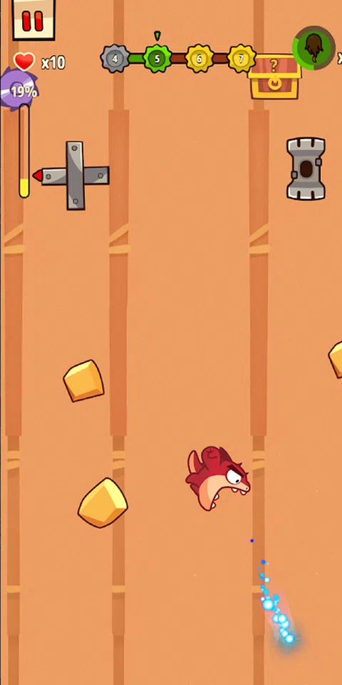 作为勇敢而果断的幼龙,您准备好迎接挑战了吗?燃烧一切阻碍你的东西,积累财富,解锁新的力量。 游戏具有独特的移动体验效果,需要主角龙的反方向力来发射子弹。 冲向终点线,获得财富,赢得胜利。 -解锁各种特殊效果和皮肤! - 升级您的技能并提高攻击效率! -慢动作效果可以更好地体现射击子弹的酷炫! -游戏中有更多的防护罩、磁铁和其他增益效果,将帮助您完成挑战! -弹性设备可以帮助您飞得更高