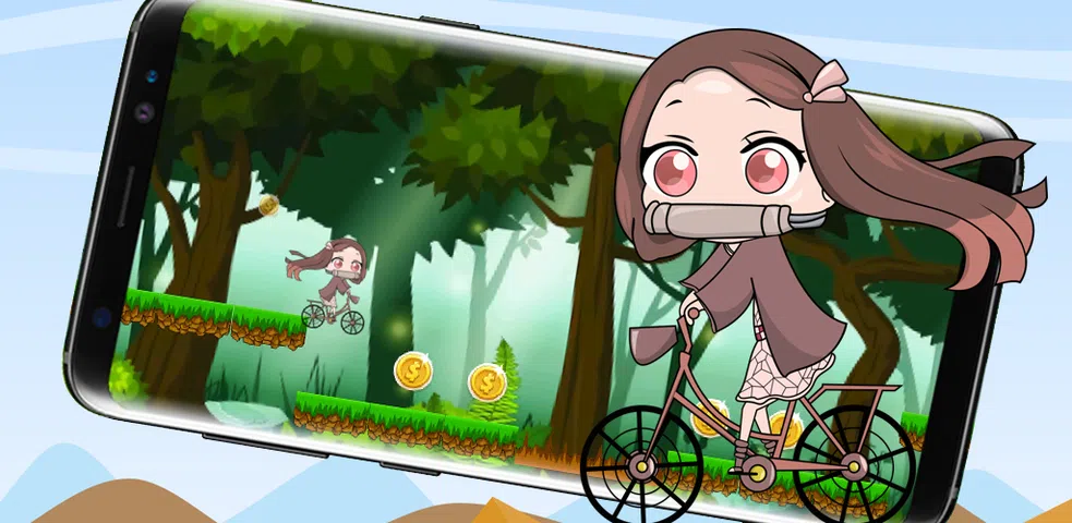 嗨.恶魔杀手 Kimetsu 粉丝。现在,您可以玩这个可爱的游戏. Kimetsu 自行车冒险游戏,与 Nezuko Kamado 恶魔杀手 Kimetsu no yaiba 一起玩,玩得开心.