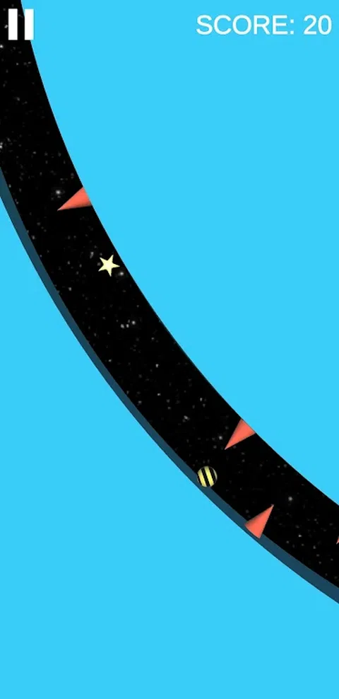无限循环中的球圈。尖刺和星星随机生成在球的前面。您的主要目标是尽可能长时间地避免尖峰。随着游戏的进行,它变得越来越难。收集星星并使用它们在商店菜单中购买新球