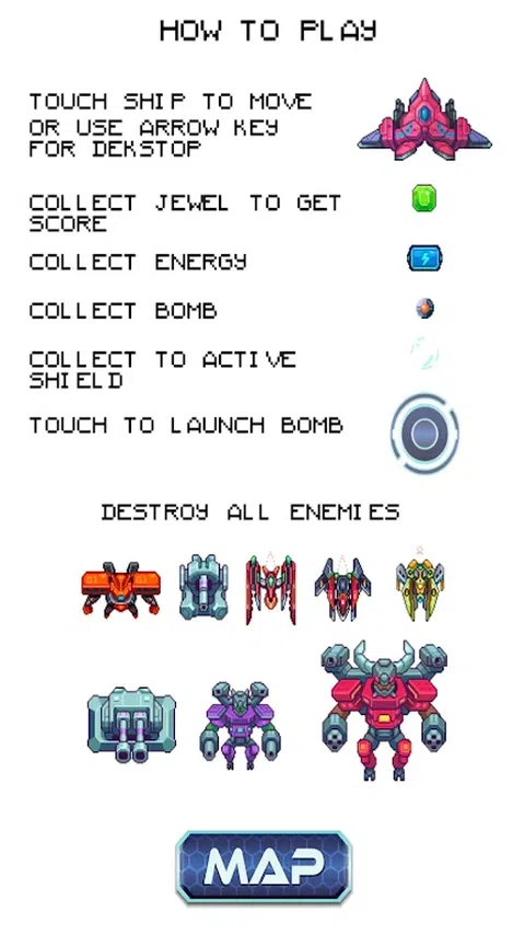 星际战士 一款动作射击游戏,获取能量物品、炸弹、盾牌等,消灭所有敌人并到达终点以进入下一个级别。 为 SHMUP 粉丝提供出色的游戏玩法、图形和配乐。 立即尝试