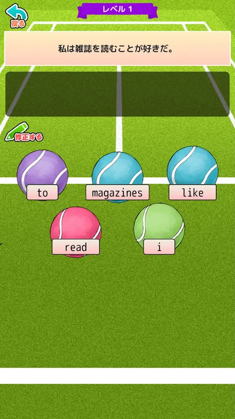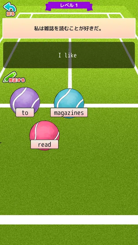 第四款超级简单的英语学习软件! 点击网球完成正确的句子! 四、题目围绕初中二至三年级英语水平! 完全免费学习! 配备简单模式,即使是那些不擅长英语的人 您可以清除 200% 让我们在青春期不断完善自己! !