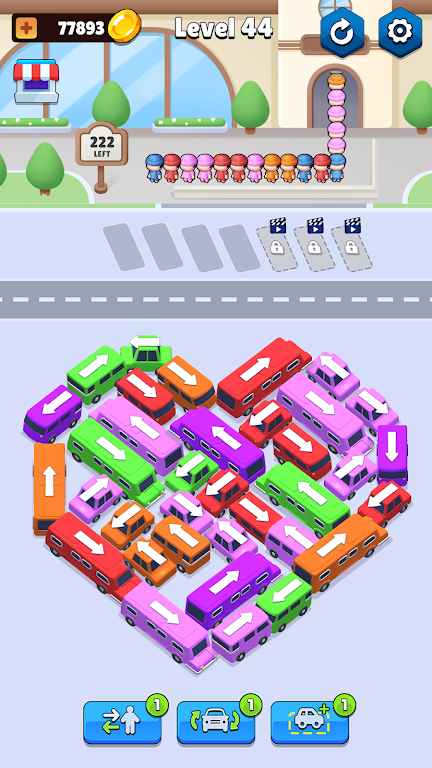 您准备好在充满挑战和刺激的游戏中逃离混乱的交通拥堵了吗?欢迎来到“Bus Out:Escape Traffic Jam”,这是一款终极益智休闲游戏,它将测试您在狂野的公交车堵塞中导航的技能!扮演交通管制员的角色,想办法逃离繁忙街道的狂热! 怎么玩: 在“Bus Out: Escape Traffic Jam”中,你的任务是引导公交车到正确的方向,并确保正确的乘客上车。其工作原理如下: - 根据箭头的方向和即将到来的乘客的颜色来导航公交车。 - 将巴士颜色与等待上车的乘客匹配。只有颜色正确的巴士才能接载乘客! - 仔细管理有限的停车位。您需要有策略地清理空间,以避免阻塞其他巴士 - 使用助推器获得优势,如洗牌巴士、对乘客进行分类等 - 掌握这些步骤,您将成为终极解谜巴士大师! 主要特点: - 独特的益智游戏玩法:通过匹配颜色和在街道中导航来逃离公交车堵塞。上手容易,精通难! - 明亮的艺术风格:享受充满活力、多彩的视觉效果,让每个级别都令人兴奋 - 具有挑战性的级别:从休闲乐趣到硬核挑战,所有技能级别的难度都会增加 - 无尽乐趣:无数关卡,乐趣永无止境! - 适合所有人:非常适合休闲玩家和益智爱好者,为所有人提供一些东西 准备好进入巴士狂热和解谜混乱的世界了吗?立即下载《Bus Out: Escape Traffic Jam》,体验解开交通谜题、逃离拥堵、驾驶多彩公交车的快感!挑战在等着你,无尽的乐趣就在前方,你会发现自己会回来寻找更多。准备好逃离堵塞,今天成为终极巴士拼图大师!
