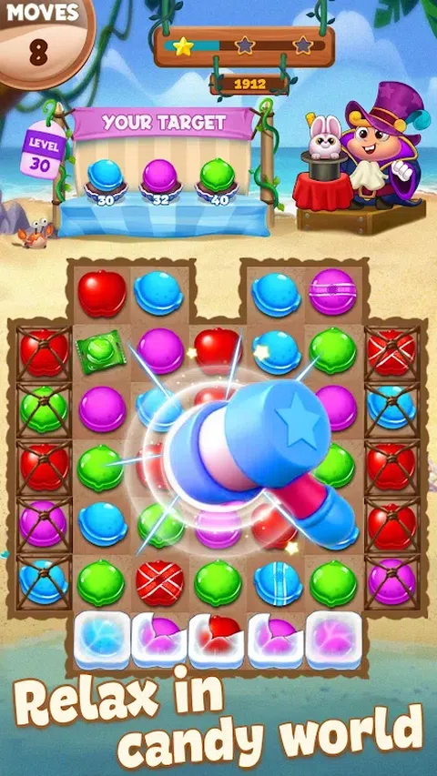 糖果 2023 - 探索神奇的糖果王国,帮助可爱的糖果仙子开启全新的美味冒险。在 1000 多个级别的假日主题交换和匹配的益智游戏中尽情玩耍! 进化雪糖农场国家、城市和魔法镇船。现在是冒险和珠宝狂热的时候了! ‿ 糖果 2023 功能:‿ 粉碎或炸弹障碍! 适合国王或甜王后的有趣游戏! 拖动和交换碎片或按下并选择交换! 粉碎或炸开饼干以创造最大的饼干点 障碍:雪花、巧克力派、棉花糖锁、曲奇狂潮、坚不可摧的糖果、. 组合:多色糖果、软糖、. POP 这些美味的果冻糖果、软糖蜡烛对象、宝石、. 掌握数百个关卡,达到惊人的成就,成为糖果冰霜传奇! 交换和刷卡这么多甜蜜的果冻宝石、糖果手杖和软糖宝石! 令人惊叹的音乐和声音粉碎飞溅效果! 粉碎或爆破并匹配 3 个或更多相同的饼干来爆裂 圣诞冒险,不间断。 + 如何玩糖果 2023 匹配 3 颗糖果,即相同颜色的糖果,摧毁方块、糖果并获得星星和分数。 匹配 4 颗糖果制作一个特殊的繁荣饼干,这种糖果可以大面积摧毁许多饼干。 匹配 5 颗糖果按照 I、T、L 形状制作最好的特殊饼干,可以破坏所有相同颜色的饼干,您只需将其与任何糖果互换。 当所有方块都被破坏时,会出现一个特殊的星星,你必须破坏饼干才能让特殊的星星掉到底部。你赢了! 您可以观看短广告视频以解锁所有级别,并获得更多提示。 最后请给我们您的反馈,它将帮助我们开发 Candy 2023。非常感谢您