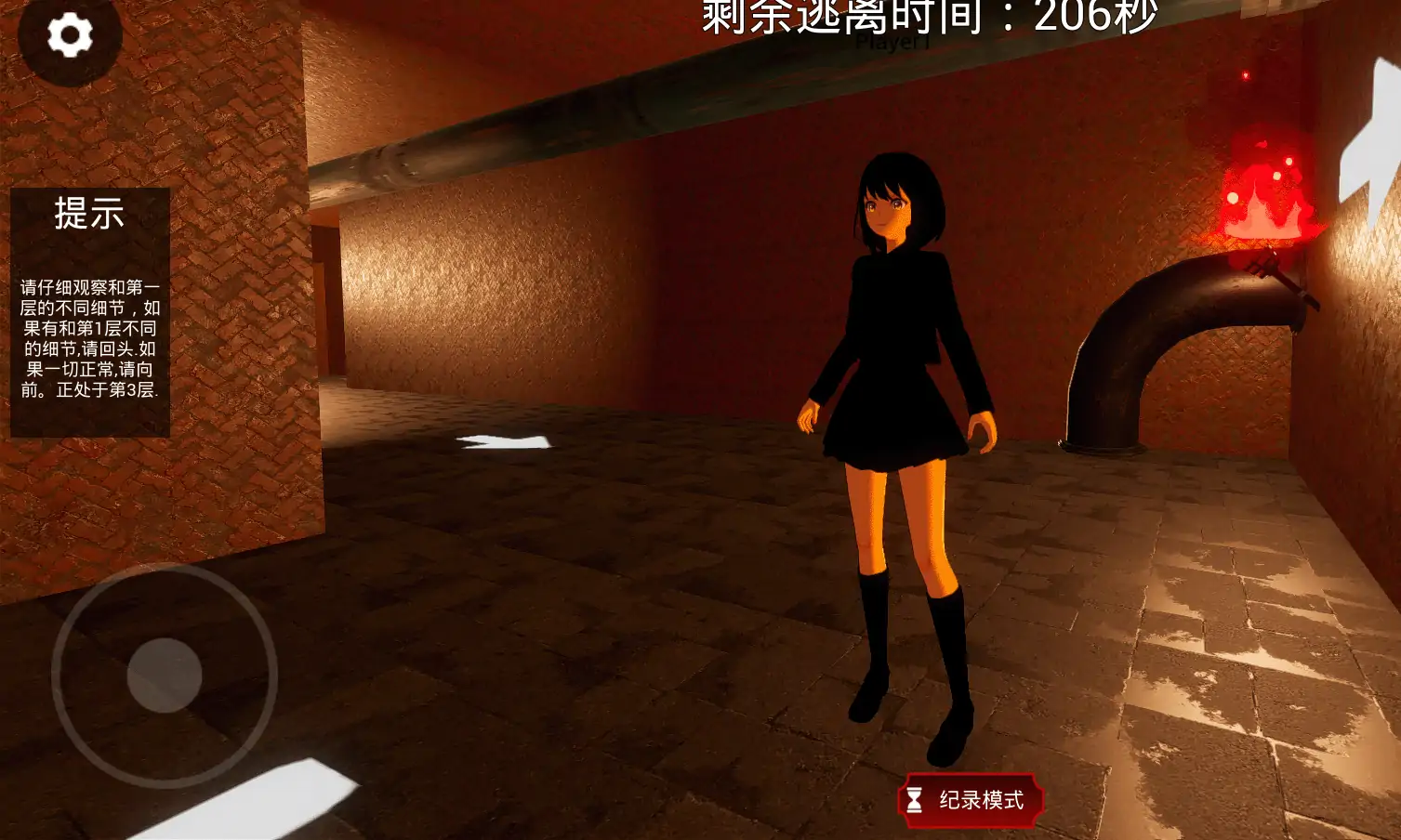 1.第一层是参考层,游戏开始后,在第一层只需要根据地图箭头指示向前走,就可以顺利进入到第二层。 2.从第二层开始,有一半概率会出现与第一层不同的细节,包括声音,画面,场景模型等累计20种左右的“异常”,你需要仔细观察,一旦发现与第一层某个细节不同,请立即反方向走到出口,才能顺利进入到下一层。如果当前层有异常,而你仍然按照指示箭头行走到出口处,则会被传送到第一层重新开始 3.如果当前层任何细节无异常情况,你必须根据地图箭头指示向前走才能顺利进入下一层。如果反方向行走到出口,会自被传送到到第一层重新开始,请仔细观察后再决定向哪个出口走。 4.竞速赛中,你可以使用道具制造假“异常”来迷惑其它玩家。使用后其它玩家会的地图视角里,会产生异常情况,但是不是真实的异常。