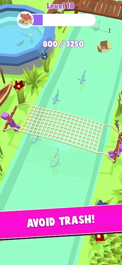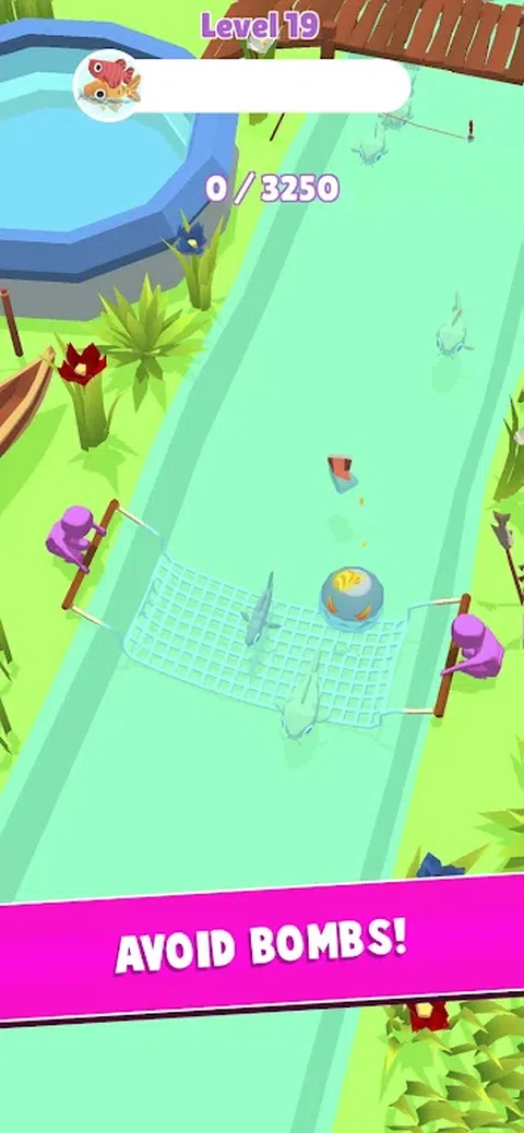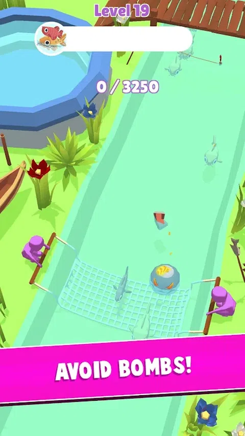 拖动装满鱼的网,同时避开碎片和炸弹。 尽快收集满池的鱼